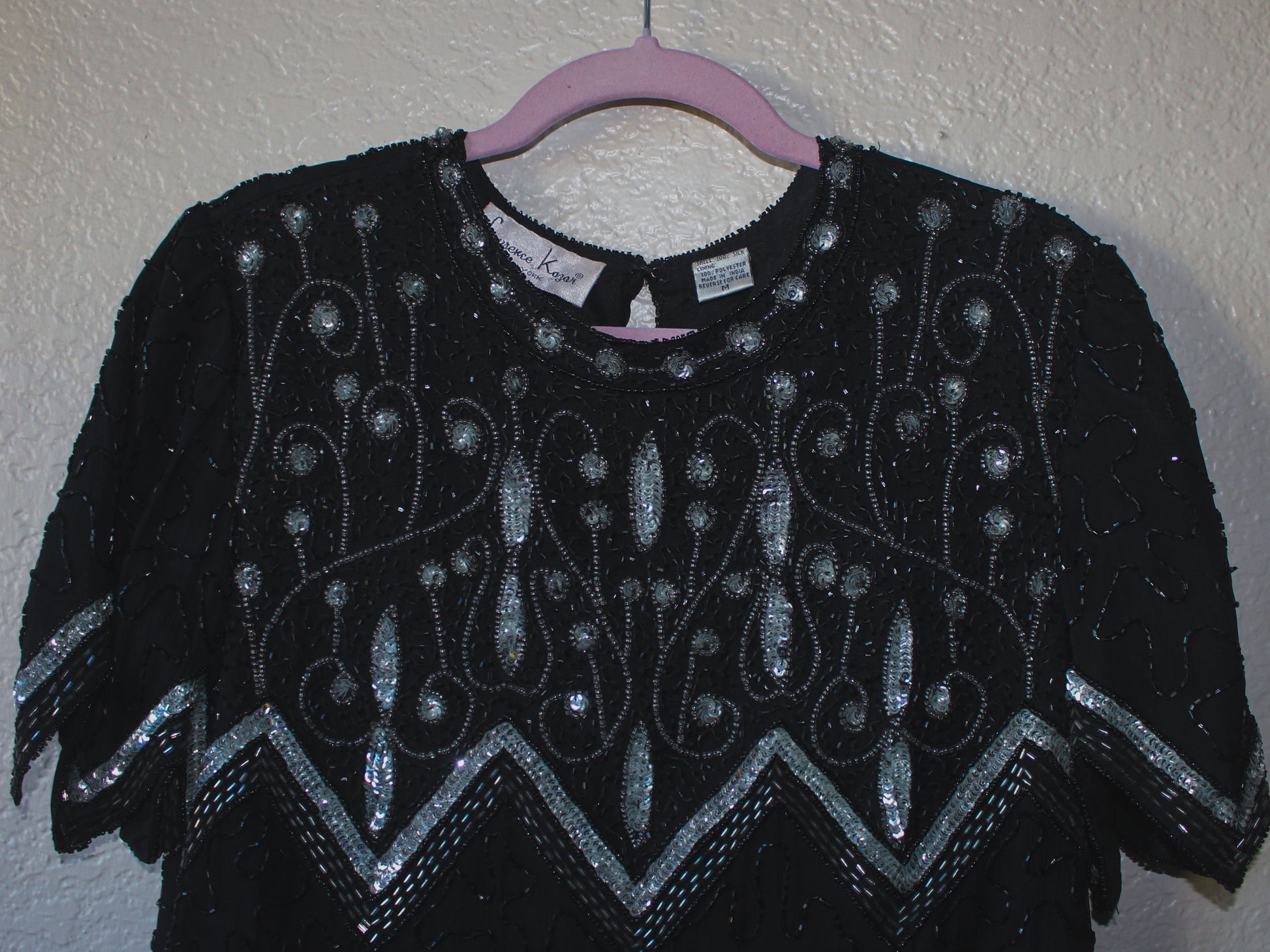 Prepare to turn heads in this stunning Countdown Laurence Kazar beaded top! Every inch shimmers with intricate beadwork that catches the light beautifully, crafted from luxurious 100% silk for a soft, elegant drape against your skin and a polyester lining. With a hook and eye closure at the back keeps everything comfortable and secure. Perfect for special occasions, nights out, or whenever you want to feel absolutely fabulous. This is the kind of piece that makes you feel like the star of the show! Tag read size Medium